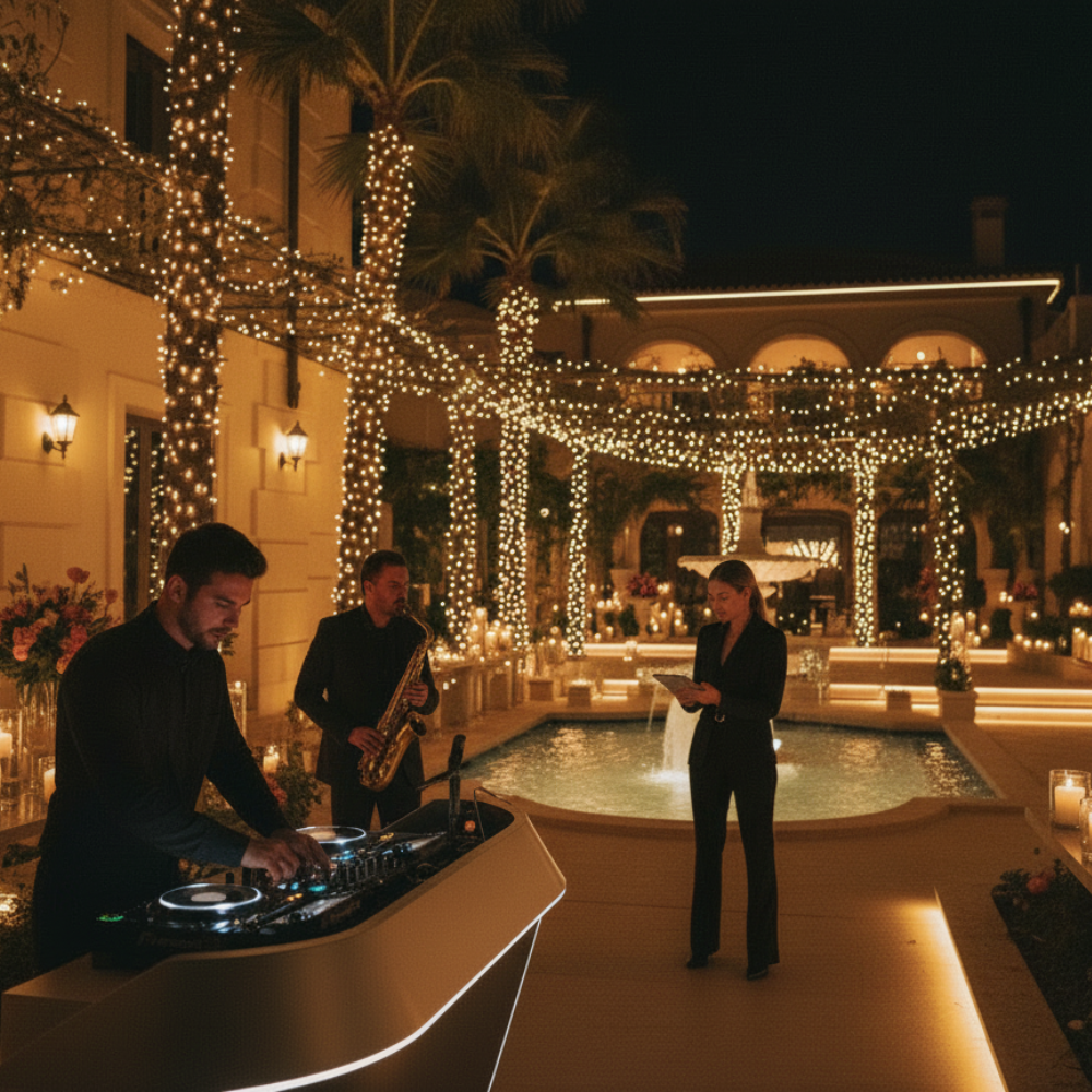 From load-in to final track, every musical detail is managed with precision. Artist coordination. Sound production. Timing and transitions. No surprises. No awkward moments. You host. We execute.