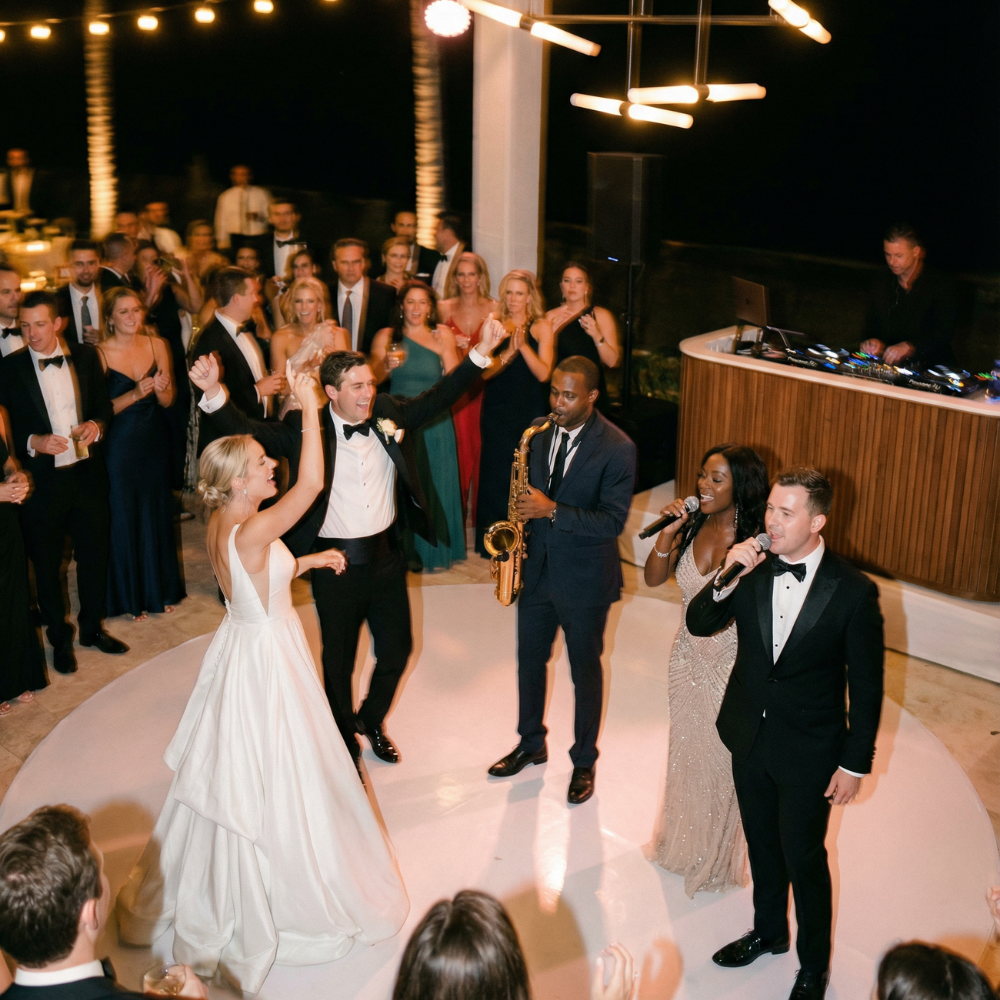 Absolutely. We design the complete musical journey: ceremony, cocktail hour, dinner, first dance, celebration, and late-night. One music director manages everything so there are no gaps, no awkward transitions, and no stress for you.